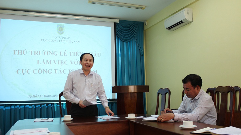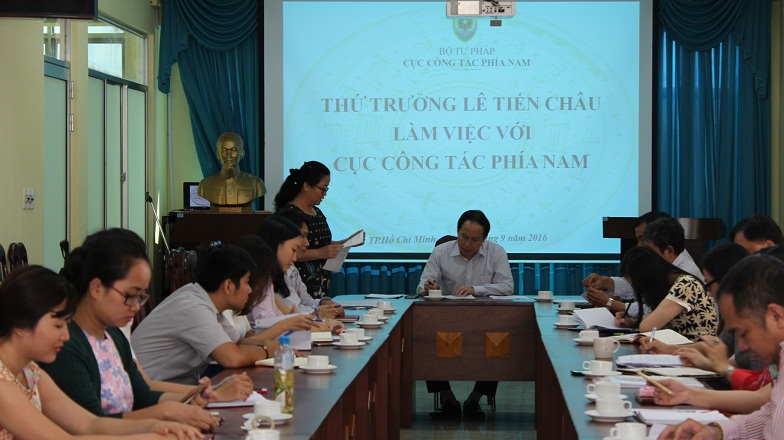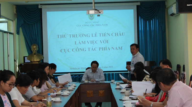 Ghi nhận, biểu dương những kết quả đạt được của Cục CTPN, Thứ trưởng chỉ rõ tồn tại như chất lượng công tác theo dõi một số công việc cụ thể còn chưa cao; chưa đánh giá được những điểm nổi, điểm nghẽn nổi bật; chưa có sự phối hợp chặt chẽ giữa một số đơn vị thuộc Bộ khi vào công tác tại khu vực phía Nam với Cục CTPN. Thứ trường chỉ đạo Cục CTPN tập trung nguồn nhân lực thực hiện tốt một số nhiệm vụ trọng tâm: Rà soát lại Kế hoạch công tác năm 2016 của Cục CTPN, phấn đấu hoàn thành nhiệm vụ; thực hiện phối hợp tốt vối các đơn vị thuộc Bộ để thực hiện các nhiệm vụ chung của Bộ, Ngành Tư pháp theo Quyết định 1684/QĐ-BTP. Cục CTPN tự nâng cao hơn nữa chất lượng hoạt động để đáp ứng được yêu cầu chung; tiếp tục hoàn thiện Quy chế quản lý, sử dụng tài sản chung, bố trí phòng làm việc và trang thiết bị phục vụ công tác giữa các đơn vị sử dụng chung trụ sở 200C Võ Văn Tần.