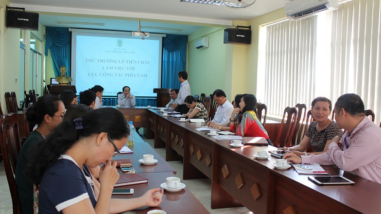 Chiều ngày 08 tháng 9, Thứ trưởng Lê Tiến Châu đã có buổi làm việc với Cục Công tác phía Nam (Cục CTPN) về kết quả công tác 8 tháng đầu năm và nhiệm vụ trọng tâm 4 tháng cuối năm 2016. Tham dự buổi làm việc có các đồng chí lãnh đạo và toàn thể công chức, viên chức Cục CTPN.