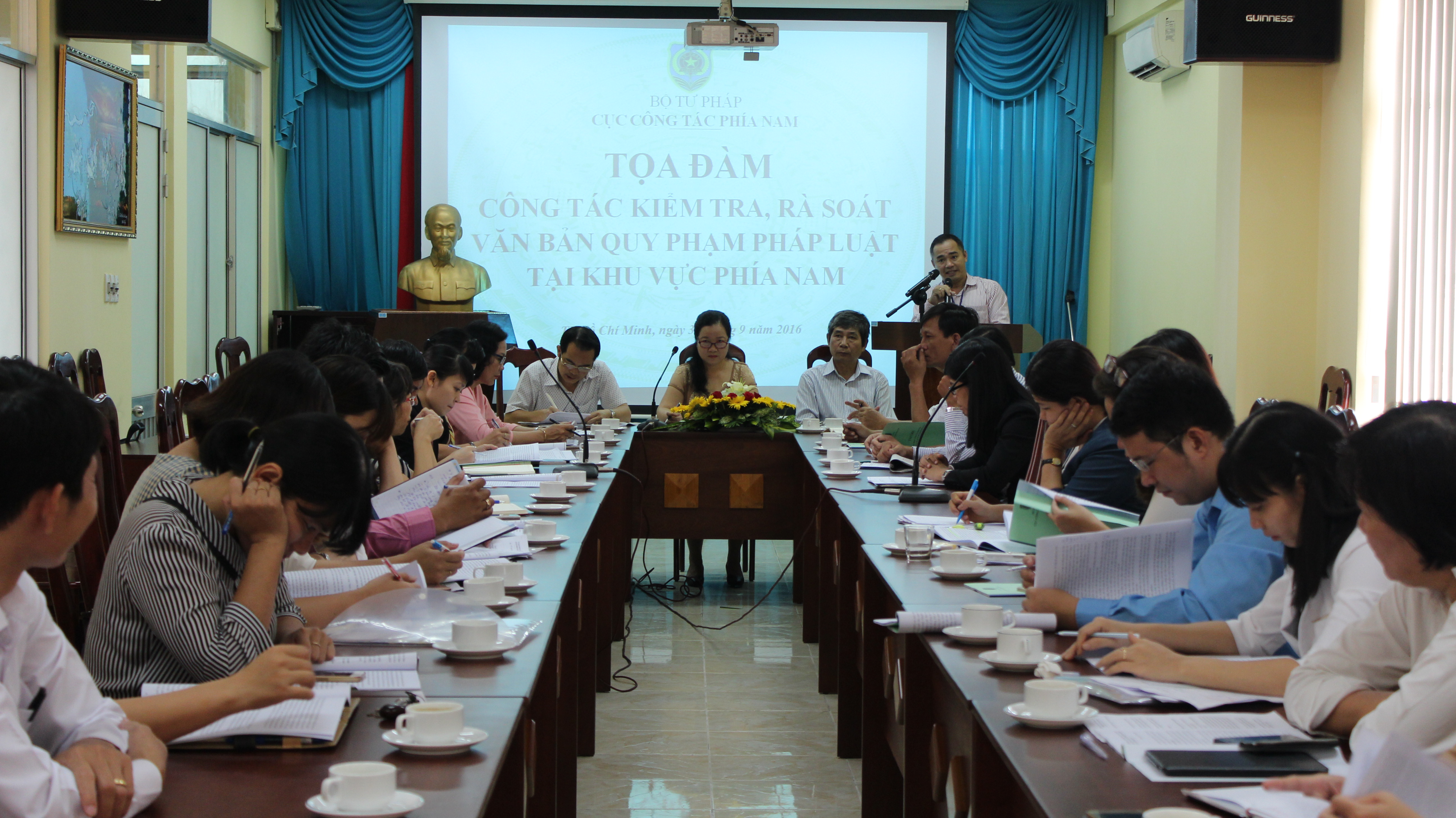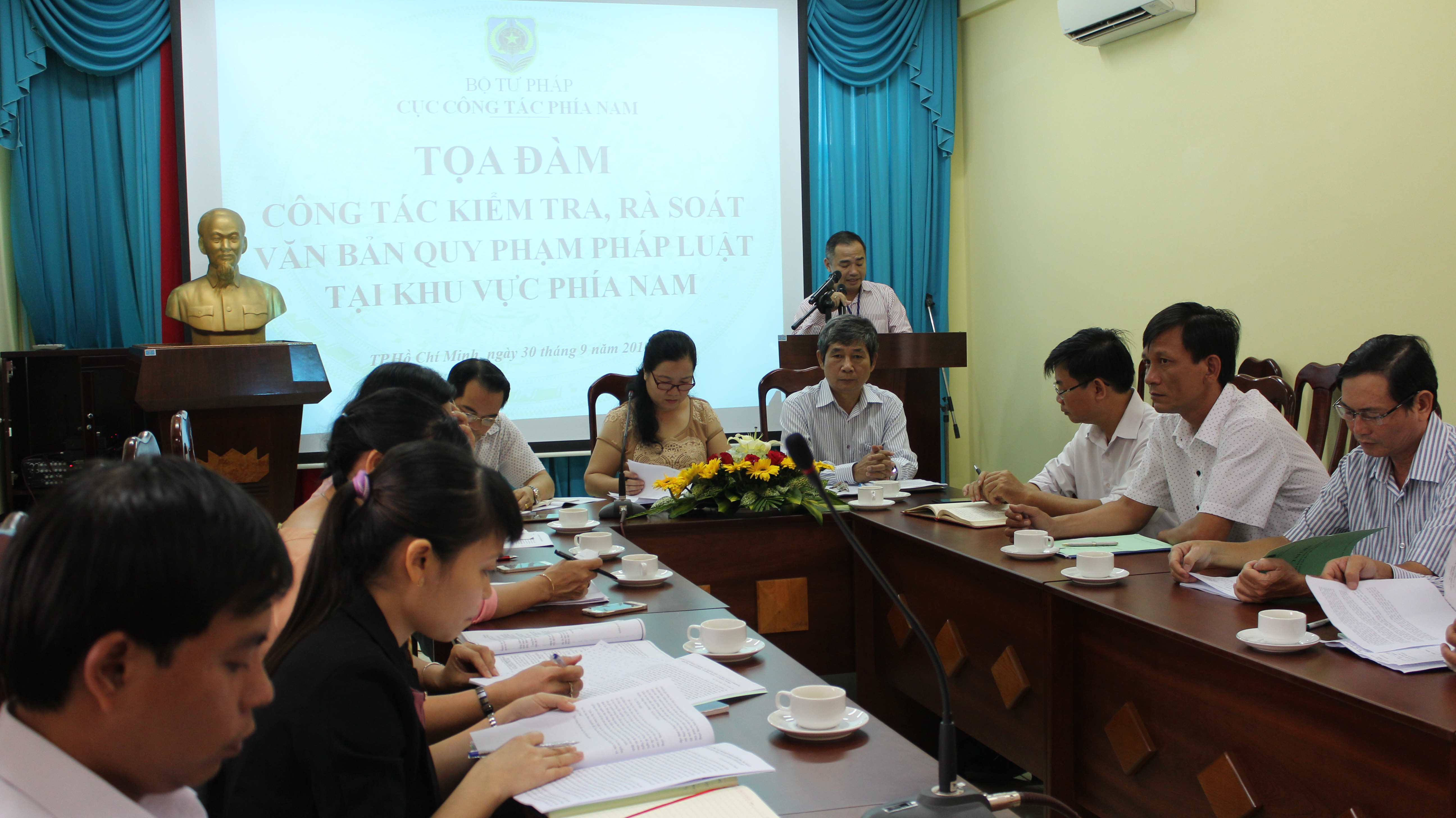 Sáng ngày 30/9/2016, Cục Công tác phía Nam đã tổ chức Tọa đàm công tác kiểm tra, rà soát văn bản quy phạm pháp luật. Tọa đàm có sự tham gia của 08 Sở Tư pháp tại khu vực phía Nam, 04 Phòng Tư pháp của quận, huyện và cán bộ pháp chế của 05 Sở, ngành tại Thành phố Hồ Chí Minh.