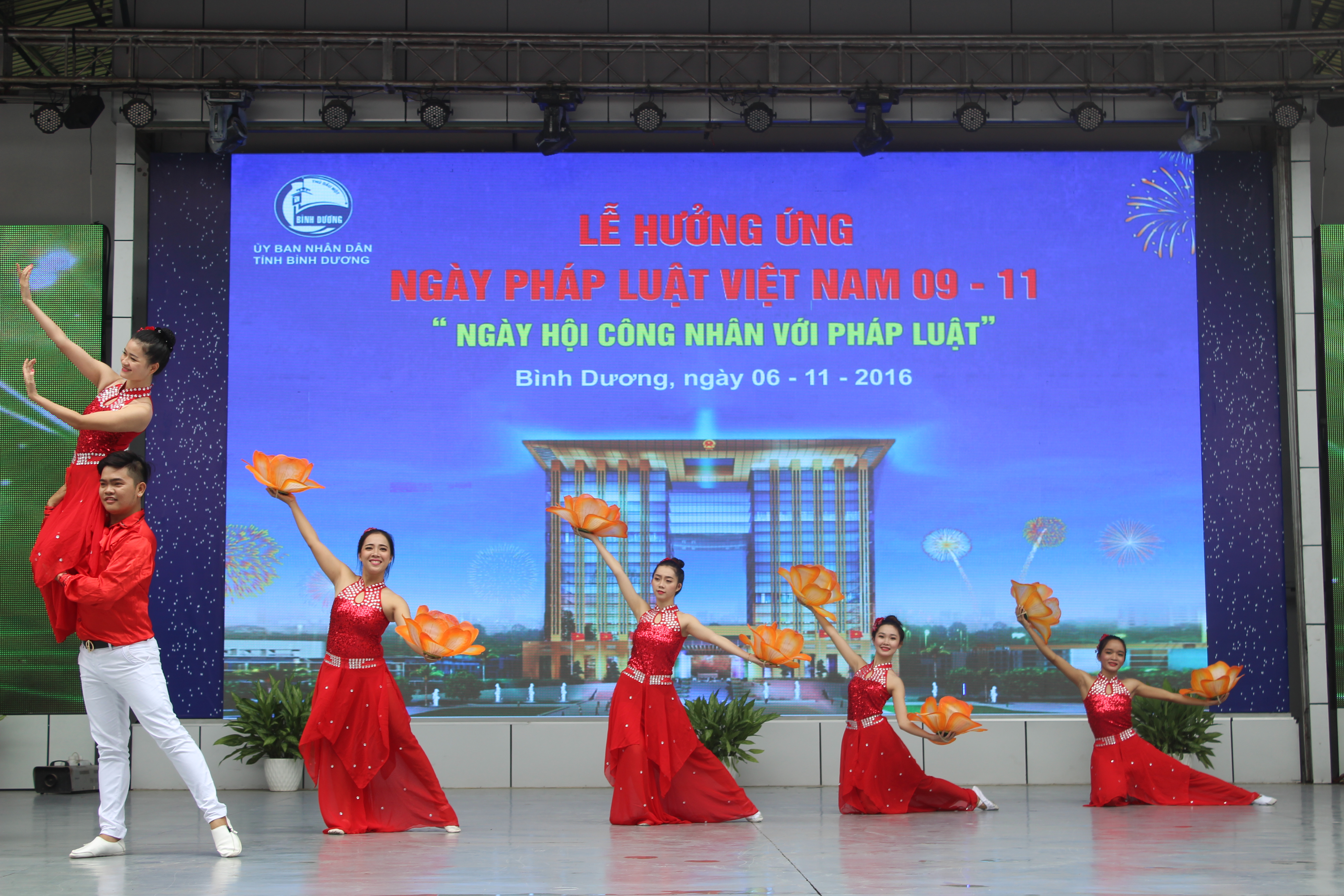 Thực hiện Kế hoạch số 3761/KH-UBND ngày 10/10/2016 của Ủy ban nhân dân tỉnh Bình Dương về việc thực hiện ngày Pháp luật Viêt Nam vào ngày 9 tháng 11 hàng năm. Ngày 06/11/2016, Sở Tư pháp Bình Dương đã phối hợp các Ban, Ngành trong tỉnh tổ chức lễ hưởng ứng ngày Pháp luật Việt Nam (9/11) và Ngày hội Công nhân với pháp luật tại khu công nghiệp Mỹ Phước 2, thị xã Bến Cát, tỉnh Bình Dương với nhiều nội dung phong phú thiết thực như: Tư vấn pháp luật, sức khỏe, giới thiệu việc làm miễn phí, tiểu phẩm pháp luật, đố vui pháp luật có thưởng, bán hàng giảm giá…. Qua đó, tạo thêm kênh thông tin tìm hiểu pháp luật và sân chơi bổ ích, lành mạnh cho công nhân lao động.