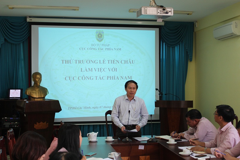 Sau khi lắng nghe ý kiến phát biểu của Lãnh đạo, công chức, Cục Công tác phía Nam, Thứ trưởng Lê Tiến Châu ghi nhận và đánh giá cao kết quả mà Cục Công tác phía Nam đã đạt được trong 7 tháng đầu năm 2017; công tác phục vụ Lãnh đạo Bộ, Lãnh đạo các đơn vị thuộc Bộ được thực hiện tốt; theo dõi sát công tác tư pháp, thi hành án dân sự địa phương trong khu vực; phối hợp khá tốt với các đơn vị thuộc Bộ trong công tác tại khu vực phía Nam; tổ chức tốt Hội nghị giao ban khu vực về công tác tư pháp, các Tọa đàm để Lãnh đạo Bộ có những chỉ đạo sát hơn về công tác tư pháp, thi hành án dân sự dịa phương… Tuy nhiên, Thứ trưởng cũng lưu ý, Cục Công tác phía Nam cần phát huy hơn nữa, bám sát Quyết định 1684 của Bộ trưởng Bộ Tư pháp để thực hiện nhiệm vụ tốt hơn; tạo ra