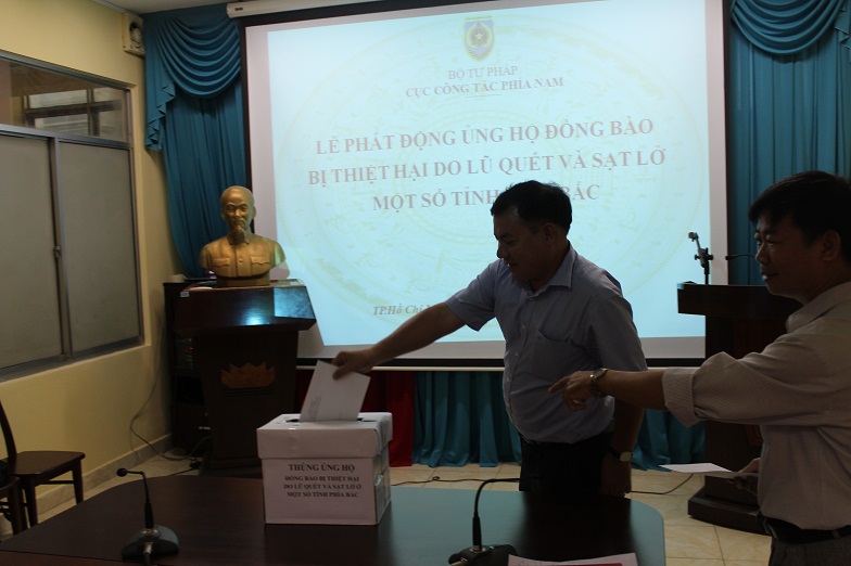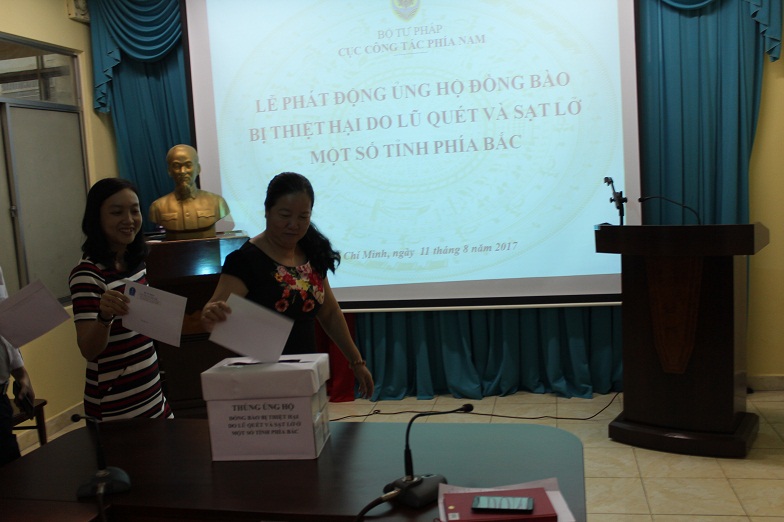 Chiều ngày 11/8/2017, hưởng ứng Lễ phát động ủng hộ đồng bào một số tỉnh miền núi phía Bắc bị thiệt hại do đợt lũ quét và sạt lở vừa qua do Công đoàn Bộ Tư pháp phát động, Công đoàn cơ sở Cục Công tác phía Nam, Bộ Tư pháp đã tổ chức quyên góp ủng hộ đồng bào bị ảnh hưởng thiên tai.