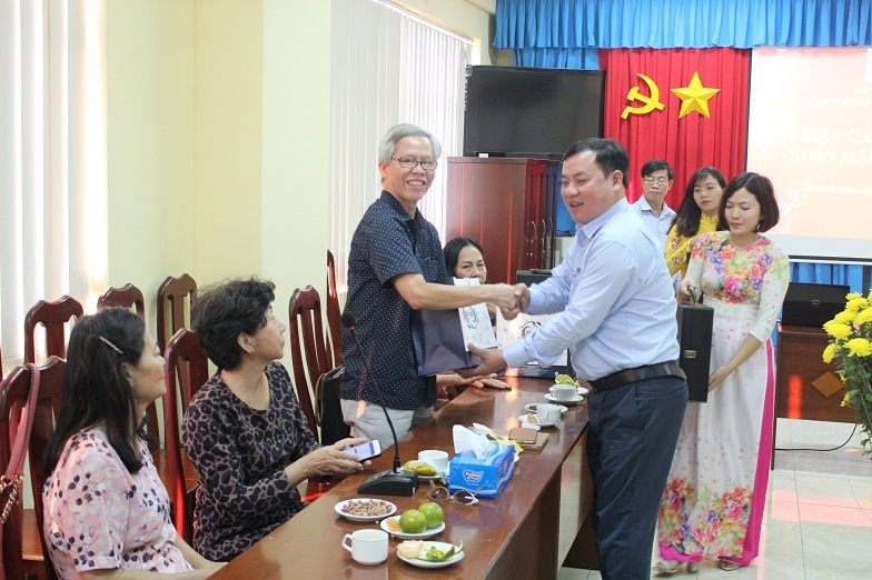 Tại buổi gặp mặt, Cục trưởng Nguyễn Thanh Bình đã trao những phần quà của Bộ Tư pháp và của Cục Công tác phía Nam đến các cán bộ hưu trí.