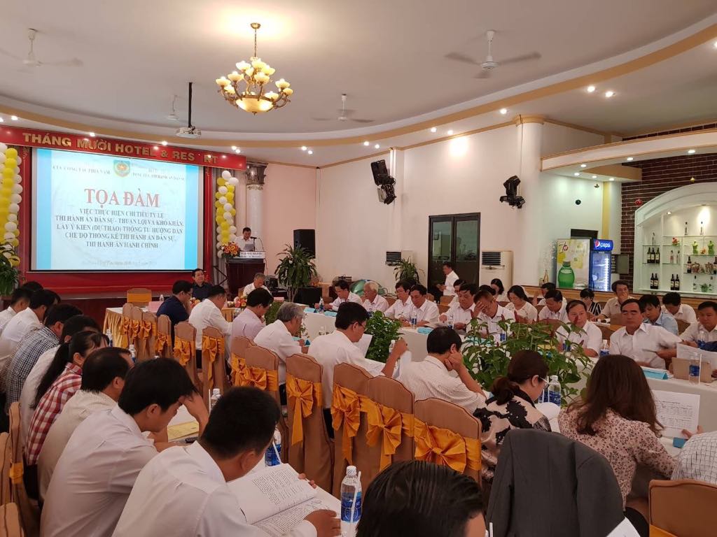 Thực hiện Kế hoạch tổ chức hội nghị, hội thảo, tọa đàm, tập huấn và các đoàn thanh tra, kiểm tra, khảo sát của Bộ Tư pháp năm 2018 và Kế hoạch công tác năm 2018 đã được Bộ trưởng Bộ Tư pháp phê duyệt và ngày 11/5/2018 Cục Công tác phía Nam (Cục CTPN) đã phối hợp với Tổng cục Thi hành án dân sự tổ chức Toạ đàm “Việc thực hiện chỉ tiêu tỷ lệ thi hành án dân sự - thuận lợi và khó khăn. Lấy ý kiến (dự thảo) thông tư hướng dẫn chế độ thống kê thi hành án dân sự, thi hành án hành chính” tại thành phố Vũng Tàu, tỉnh Bà Rịa – Vũng Tàu.