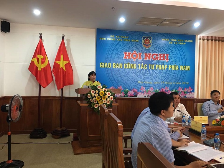 Chiều ngày 19/6/2018, tại Hậu Giang, Cục Công tác phía Nam – Bộ Tư pháp đã phối hợp Sở Tư pháp Hậu Giang tổ chức Hội nghị giao ban công tác tư pháp khu vực phía Nam 6 tháng đầu năm 2018. Chủ trì Hội nghị có Bộ trưởng Lê Thành Long, Chủ tịch Ủy ban nhân dân tỉnh Hậu Giang Lê Tiến Châu, Cục trưởng Cục Công tác phía Nam Nguyễn Thanh Bình và sự tham dự của Lãnh đạo một số đơn vị thuộc Bộ Tư pháp, 25 Lãnh đạo Sở Tư pháp khu vực phía Nam, Văn phòng Tỉnh ủy, Hội đồng nhân dân, Ủy ban nhân dân tỉnh Hậu Giang.