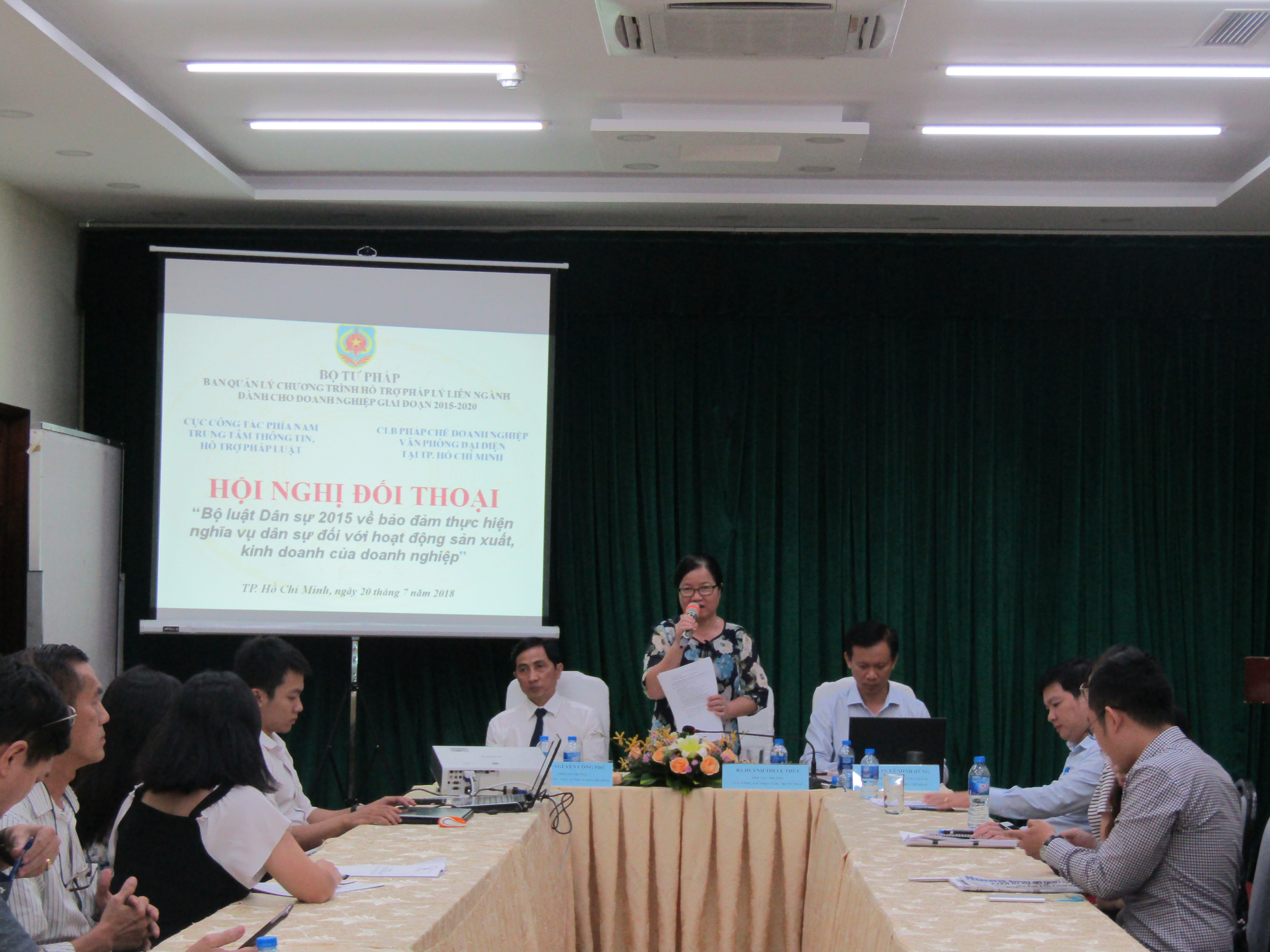 Tham gia chủ trì Hội nghị là hai khách mời đồng thời là hai chuyên gia đến từ Trường Đại học Luật TP. Hồ Chí Minh – PGS.TS. Lê Minh Hùng, Trưởng Bộ môn Luật Dân sự và Thẩm phán Nguyễn Công Phú – Phó Chánh Tòa Kinh tế - Tòa án Nhân dân thành phố Hồ Chí Minh cùng với sự hiện diện của hơn 100 đại biểu là các cán bộ pháp chế, cán bộ ở các đơn vị có liên quan được giao làm công tác hỗ trợ pháp lý cho doanh nghiệp thuộc các Sở, ban, ngành thuộc UBND cấp tỉnh, thành khu vực phía Nam; cán bộ pháp chế doanh nghiệp, người quản lý doanh nghiệp; các tổ chức đại diện của doanh nghiệp; các Luật sư, luật gia, cố vấn pháp luật của doanh nghiệp tại TP. Hồ Chí Minh.