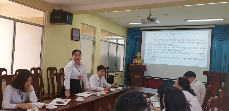 Tại buổi trao đổi, các công chức, viên chức cũng thảo luận sôi nổi như mô hình Ngày pháp luật bắt nguồn từ sáng kiến của địa phương nào; các nước trên thế giới có tổ chức ngày pháp luật không; nêu một số mô hình, cách triển khai Ngày pháp luật có hiệu quả; những tồn tại, hạn chế trong triển khai Ngày pháp luật; một số giải pháp để nâng cao hiệu quả ngày pháp luật.