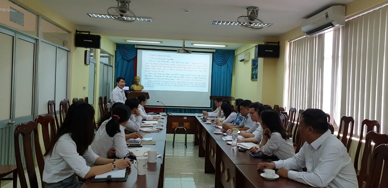 Ông Hoàng Huy Trường - Phòng Công tác Tư pháp đã trình bày về mục đích, ý nghĩa; những chủ đề nội dung Ngày pháp luật; những kết quả đạt được sau 05 năm triển khai Ngày pháp luật của nước Cộng hòa xã hội chủ nghĩa Việt Nam đã được các Bộ, ngành, địa phương hưởng ứng sâu, rộng, có sức lan tỏa mạnh mẽ trong toàn xã hội, đưa công tác phổ biến, giáo dục pháp luật ngày càng đi vào chiều sâu, thực chất, hiệu quả, góp phần quan trọng cho sự nghiệp xây dựng Nhà nước pháp quyền, đã xuất hiện nhiều cách làm hay, sáng tạo như: sân khấu hóa; Hội thi tìm hiểu Hiến pháp, các Bộ luật; Thi tìm hiểu pháp luật trực tuyến; Đối thoại về chính sách và pháp luật; cà phê pháp luật; Phối hợp với Đài Phát thanh - Truyền hình thực hiện Chương trình; Phối hợp với báo, đài địa phương đăng tải bài viết phản ánh hoạt động phổ biến, giáo dục pháp luật và giải đáp pháp luật….