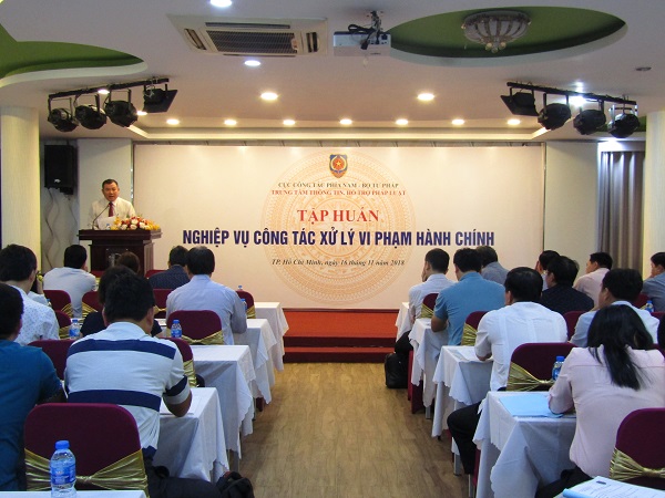 Vi phạm hành chính mang tính phổ biến trong nhiều lĩnh vực của đời sống xã hội với những diễn biến ngày một đa dạng và hết sức phức tạp. Trước những quy định của pháp luật nước ta hiện nay, việc xử lý vi phạm hành chính vẫn còn gặp phải những khó khăn nhất định. Góp phần tìm ra giải pháp cho việc xử lý vi phạm hành chính được thực hiện một cách hiệu quả hơn. Vừa qua, vào ngày 16/11/2018, Trung tâm Thông tin, hỗ trợ pháp luật (Trung tâm) Cục Công tác phía Nam – Bộ Tư pháp đã tổ chức Chương trình tập huấn “Nghiệp vụ công tác xử lý vi phạm hành chính” tại TP. Hồ Chí Minh.