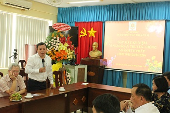 Được sự ủy quyền của Bộ Tư pháp, hoạt động gặp mặt, tri ân cán bộ hưu trí là hoạt động thường niên do Cục Công tác phía Nam tổ chức nhân Kỷ niệm ngày thành lập Ngành. Đây không chỉ là dịp ôn lại truyền thống vẻ vang 75 năm của ngành Tư pháp, quá trình hình thành và phát triển của Cục Công tác phía Nam mà còn thể hiện tình cảm, lòng biết ơn của công chức, viên chức, người lao động hiện đang công tác tại Cục đối với các cán bộ hưu trí đã có nhiều cống hiến cho Bộ, ngành Tư pháp qua các thời kỳ.