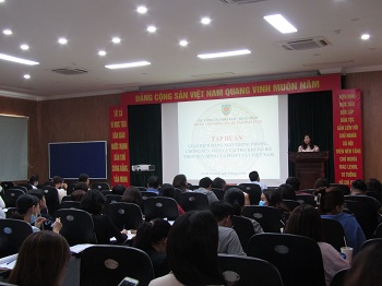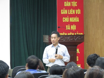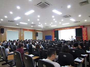 Báo cáo viên ông Nguyễn Văn Ngọc, Chánh Văn phòng Cơ quan Thanh tra, giám sát ngân hàng, Ngân hàng Nhà nước Việt Nam và sự tham gia của hơn 90 học viên đến từ các tổ chức tín dụng.