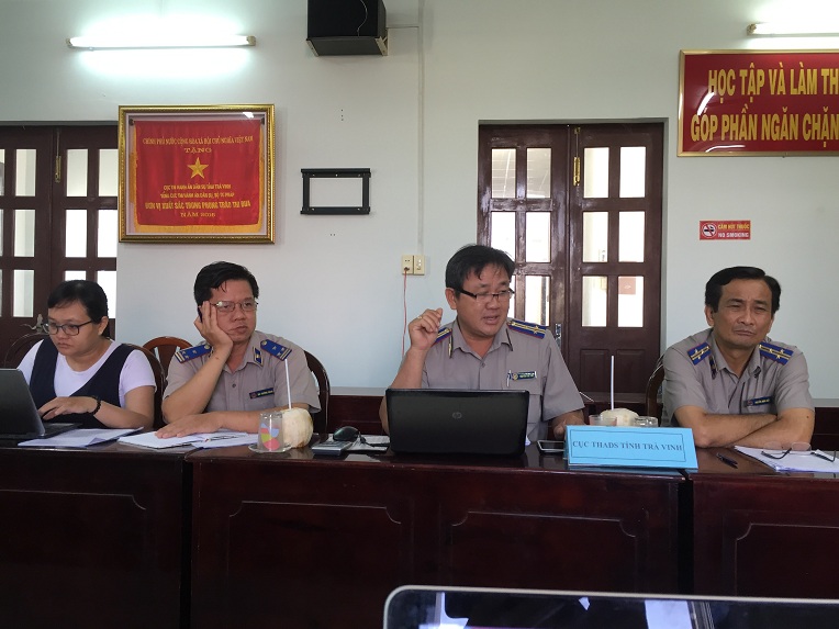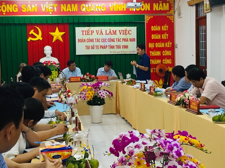 Chiều cùng ngày, Đoàn công tác cũng làm việc tại Cục Thi hành án dân sự tỉnh Trà Vinh để nắm tình hình kết quả thi hành án tại địa phương.