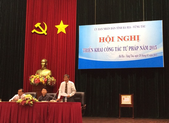 Hội nghị đã nghe đồng chí Nguyễn Văn An, Phó Giám đốc Sở Tư pháp báo cáo công tác tư pháp năm 2014, trong đó đã nêu bật những kết quả đáng ghi nhận. Sở đã triển khai đồng bộ các công tác chuyên môn, hoàn thành xuất sắc 09 nhiệm vụ trọng tâm của Ngành Tư pháp trong năm 2014 theo Chỉ đạo của Phó Thủ tướng Chính phủ Nguyễn Xuân Phúc và nhiệm vụ chính trị, kinh tế tại địa phương. Các lĩnh vực công tác văn bản quy phạm pháp luật, phổ biến giáo dục pháp luật, hành chính tư pháp, bổ trợ tư pháp tiếp tục được giữ vững. Năm 2014, Sở đã nhập và lập được 3.079 hồ sơ, bổ sung được 169 thông tin vào phần mềm lý lịch tư pháp; cấp 3.032 Phiếu lý lịch tư pháp cho người dân. Hoạt động kiểm tra được tăng cường: đã kiểm tra 07/08 quận, huyện (trừ Côn Đảo do chưa thành lập Văn phòng) và 14 phường, xã về công tác hộ tịch, kiểm tra 06 đơn vị Phòng Tư pháp và 12 đơn vị cấp xã về công tác chứng thực. Hiện nay, Đoàn luật sư tỉnh có số lượng tổ chức hành nghề luật sư đứng thứ 4 và số luật sư đứng thứ 3 trong Khu vực, gồm 174 luật sư, 60 tổ chức hành nghề luật sư. Tỉnh có 03 tổ chức giám định tư pháp với 58 người giám định tư pháp… Ngoài ra, Tư pháp Bà Rịa - Vũng Tàu cũng chú trọng củng cố, kiện toàn tổ chức bộ máy, cải cách hành chính, cải tiến lề lối làm việc, rèn luyện đội ngũ công chức, viên chức, người lao động có phẩm chất và năng lực đáp ứng yêu cầu công tác.