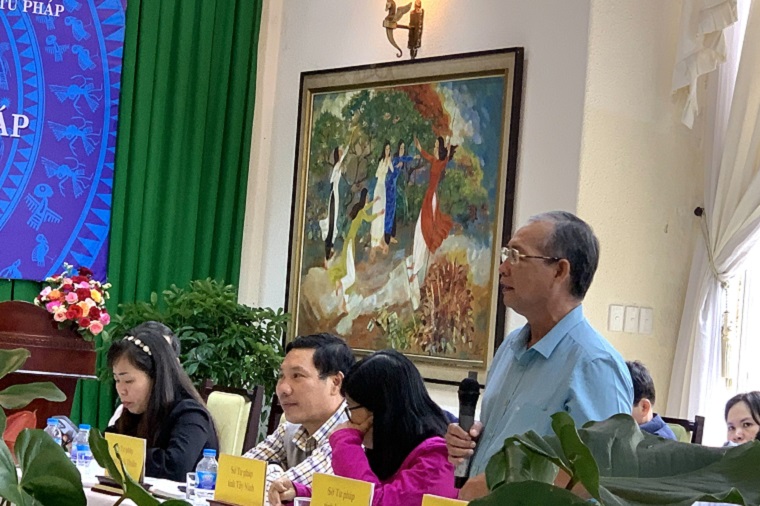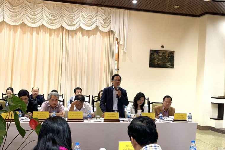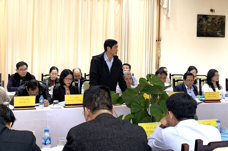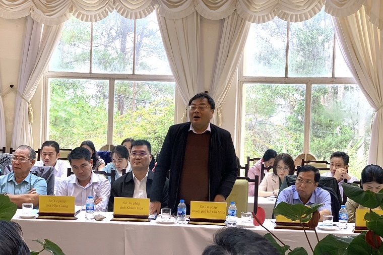 Hội nghị giao ban cũng lắng nghe ý kiến phát biểu của lãnh đạo các Sở Tư pháp An Giang, Bình Dương, Kiên Giang, Long An, Cần Thơ, TP. Hồ Chí Minh, Bến Tre, …. liên quan đến các vấn đề như thực hiện Đề án 06; những khó khăn trong việc thu hút, phát triển đội ngũ công chứng viên, đấu giá viên, giám định tư pháp; vấn đề luân chuyển, điều động công chức tư pháp – hộ tịch; số hoá hộ tịch tại địa phương; vấn đề liên quan đến xây dựng, rà soát văn bản quy phạm pháp luật…