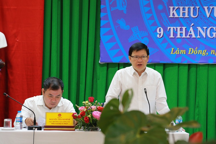 Phát biểu tại Hội nghị, Thứ trưởng Mai Lương Khôi đã điểm lại một số kết quả nổi bật trong 9 tháng đầu năm của các Sở Tư pháp, tư pháp địa phương. Thay mặt Lãnh đạo Bộ Tư pháp, Thứ trưởng Mai Lương Khôi trân trọng cảm ơn, ghi nhận và đánh giá cao sự nỗ lực, cố gắng của các tổ chức pháp chế, cơ quan tư pháp trong khu vực, kết quả mà các cơ quan tư pháp địa phương đạt được đã đóng góp trực tiếp vào sự phát triển kinh tế xã hội của đất nước, khu vực.