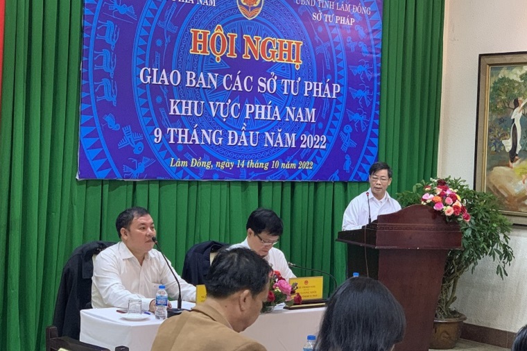 Đồng chí chỉ đạo: Năm 2022 được xác định là năm bản lề để thực hiện Nghị quyết Đại hội Đảng các cấp, với dự báo tình hình có những thời cơ thuận lợi và khó khăn, thách thức, trong đó, khó khăn, thách thức là chủ yếu. Để hoàn thành tốt các nhiệm vụ công tác tư pháp trong những tháng cuối năm, các địa phương cần: (1) Tiếp tục tập trung nguồn lực thực hiện hiệu quả, chất lượng, đúng tiến độ các nhóm nhiệm vụ công tác trọng tâm công tác, nhất là đối với những nhiệm vụ chưa hoàn thành, đang tiếp tục thực hiện; (2) Tiếp tục nâng cao chất lượng thẩm định đề nghị, dự thảo văn bản quy phạm pháp luật, phát huy vai trò tham mưu, cho ý kiến pháp lý đối với các nhiệm vụ được giao; chủ động rà soát, tham gia trách nhiệm, chất lượng trong công tác xây dựng pháp luật; (3) Tăng cường công tác phổ biến, giáo dục pháp luật theo tinh thần đổi mới, đa dạng về nội dung, hình thức; (4) Tiếp tục thực hiện tốt Quyết định số 06/QĐ-TTg ngày 06/01/2022 của Thủ tướng Chính phủ phê duyệt Đề án phát triển ứng dụng dữ liệu về dân cư, định danh và xác thực điện tử phục vụ chuyển đổi số quốc gia giai đoạn 2022 - 2025, tầm nhìn đến năm 2030, trong đó, lưu ý thực hiện cung cấp các dịch vụ công thiết yếu trong lĩnh vực hộ tịch, lĩnh lực lý lịch tư pháp theo hướng dẫn của Bộ Tư pháp; tích hợp, cung cấp 100% dịch vụ công trực tuyến lên Cổng Dịch vụ công cấp tỉnh, kết nối với Cổng Dịch vụ công quốc gia đúng tiến độ, đảm bảo chất lượng; (5) Tiếp tục thực hiện tốt các nhiệm vụ quản lý nhà nước trong lĩnh vực bổ trợ tư pháp, hành chính tư pháp; (6) Thực hiện tốt chức năng tham mưu, đề xuất các giải pháp trong công tác quản lý xử lý vi phạm hành chính và theo dõi tình hình thi hành pháp luật trên địa bàn; (7) Tăng cường ứng dụng công nghệ thông tin trong công tác chỉ đạo, điều hành; (8) Tiếp tục tham mưu kiện toàn tổ chức bộ máy, nâng cao trình độ chuyên môn nghiệp vụ cho đội ngũ công chức, viên chức của ngành, trong đó, chú trọng đội ngũ công chức Tư pháp - Hộ tịch ở cơ sở, đáp ứng yêu cầu nhiệm vụ trong tình hình hiện nay.