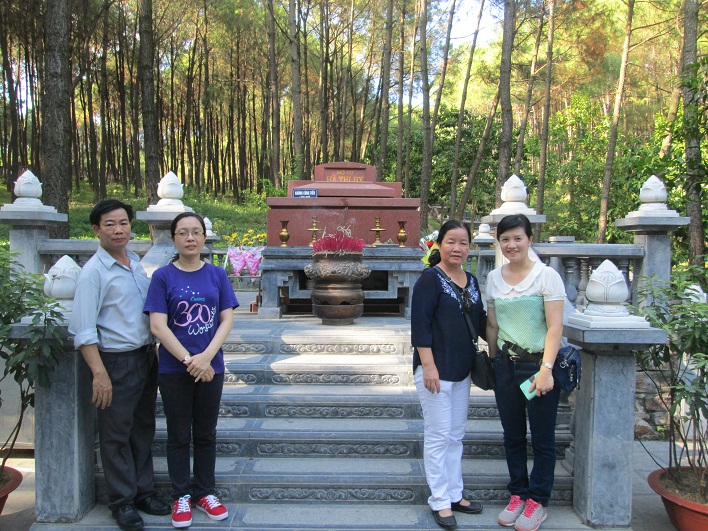 Trước khi lên viếng mộ cụ bà Hoàng Thị Loan, đoàn chúng tôi đã thắp hương cho cụ Hà Thị Hy. Cụ Hy được biết đến là một người tài sắc vẹn toàn, là con một nghệ nhân nổi tiếng nhưng chẳng may mất sớm để lại người con trai duy nhất Nguyễn Sinh Sắc mồ côi khi mới lên 4 tuổi.