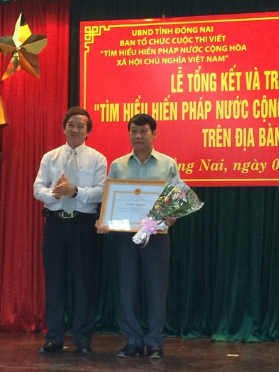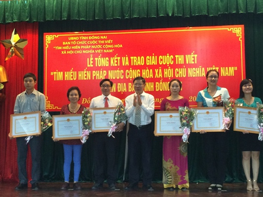 Cuộc thi tìm hiểu Hiến pháp năm 2013 được tỉnh phát động từ tháng 11/2014 với nhiều hình thức phong phú. Kết quả, toàn tỉnh đã có 36.557 bài thi, với chất lượng khá tốt. Ban Tổ chức cuộc thi của tỉnh đã lựa chọn ra 20 bài dự thi đạt điểm cao nhất trên tổng số 240 bài dự thi đạt giải cao ở cuộc thi cấp huyện để gửi về Ban tổ chức cuộc thi ở Trung ương. Trong đó, huyện Trảng Bom đã đạt giải nhất tập thể với trên 12 ngàn bài dự thi và là địa phương có số bài tham gia dự thi cao nhất tỉnh. Giải nhất cá nhân thuộc về thí sinh Huỳnh Thành Đạt, Phó bí thư Huyện đoàn Long Thành. Các bài dự thi đạt giải cao đã thể hiện sự đầu tư công phu với nội dung đầy đủ, sâu sắc, có phân tích, lý giải, so sánh, cách trình bày đẹp, nhiều hình ảnh, tư liệu phong phú.