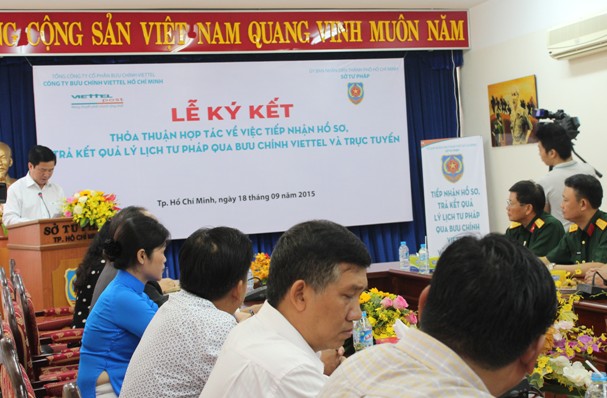 Phát biểu tại Lễ ký kết, đồng chí Huỳnh Văn Hạnh - Giám đốc Sở Tư pháp cho biết: Thành phố Hồ Chí Minh là một địa phương đông dân nhất cả nước, cùng với sự phát triển chung của kinh tế - xã hội, nhu cầu của cá nhân ngày càng tăng. Qua gần 04 năm thực hiện việc cấp Phiếu Lý lịch tư pháp, thành phố Hồ Chí Minh đã tiếp nhận và cấp hơn 230.000 Phiếu lý lịch tư pháp. Trung bình mỗi ngày Sở Tư pháp tiếp nhận khoảng 200 hồ sơ/ngày, trong đó có những tháng cao điểm tiếp nhận từ 300 đến 400 hồ sơ/ngày, cao nhất lên tới 700 hồ sơ/ngày. Việc người dân phải trực tiếp đến trụ sở Sở Tư pháp để nộp hồ sơ và nhận kết quả như hiện nay là chưa thực sự tiện ích, gây lãng phí thời gian, công sức và tiền bạc. Đồng thời, hàng ngày các công chức phải tiếp xúc với số lượng lớn người dân đến làm thủ tục là một áp lực lớn cho công chức tiếp nhận và giải quyết hồ sơ, ảnh hưởng nhất định đến chất lượng phục vụ. Do vậy, trước những yêu cầu thực tế đặt ra cho thành phố Hồ Chí Minh cũng như yêu cầu của việc cải cách thủ tục hành chính, giảm áp lực trong công tác lý lịch tư pháp, Sở Tư pháp đã mạnh dạn phối hợp với Công ty Bưu chính Viettel thành phố Hồ Chí Minh triển khai thực hiện.