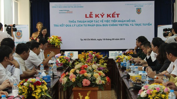 Quy trình tiếp nhận hồ sơ, trả kết quả lý lịch tư pháp qua bưu chính Viettel và trực tuyến tại thành phố Hồ Chí Minh chính thức được áp dụng từ ngày 18/9/2015./.