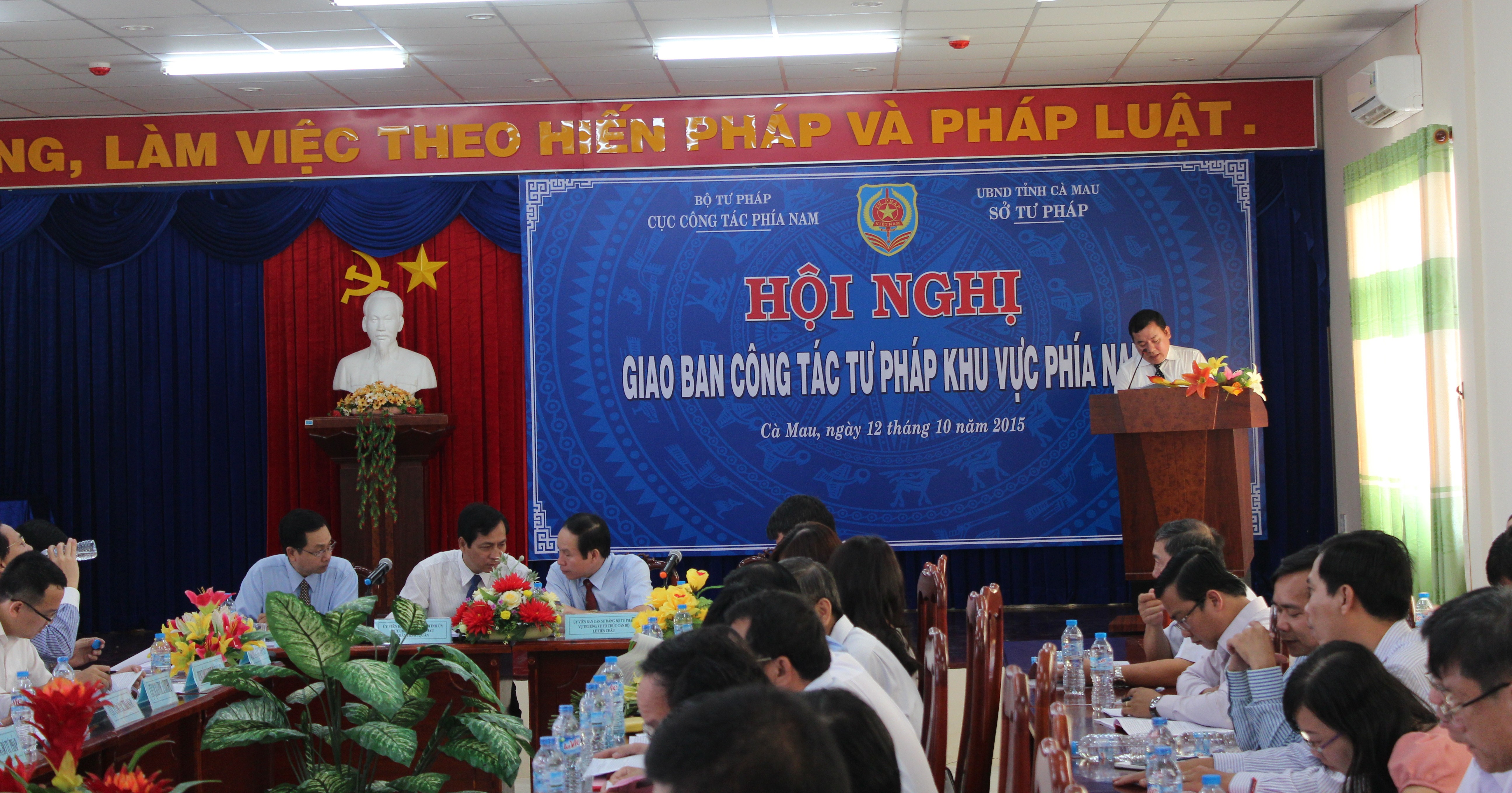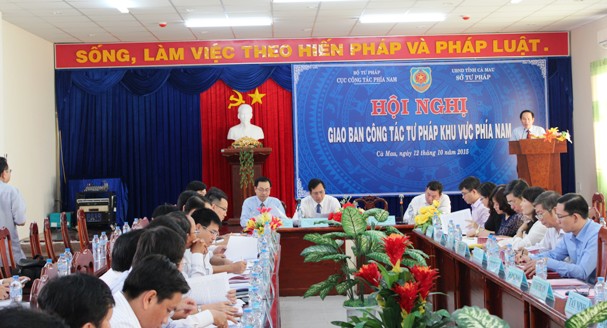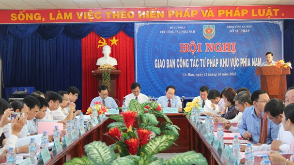 Tại Hội nghị, đại biểu đã được nghe đồng chí Nguyễn Thanh Bình - Phó Cục trưởng phụ trách Cục Công tác phía Nam báo cáo kết quả triển khai các nhiệm vụ của công tác tư pháp trong 9 tháng đầu năm 2015. Theo đó, công tác tư pháp tại các địa phương trong khu vực phía Nam đã bám sát 10 nhóm nhiệm vụ trọng tâm, triển khai cơ bản toàn diện, có trọng tâm, trọng điểm các nhiệm vụ được giao theo chỉ đạo của Chủ tịch Quốc hội Nguyễn Sinh Hùng và Thông báo kết luận của Bộ trưởng Hà Hùng Cường tại Hội nghị toàn quốc triển khai công tác tư pháp năm 2015, cụ thể: Công tác tổ chức cuộc thi viết “Tìm hiểu Hiến pháp nước Cộng hòa xã hội chủ nghĩa Việt Nam” thu hút sự tham gia của đông đảo các tầng lớp nhân dân; việc thực hiện chương trình xây dựng văn bản quy phạm pháp luật đã được quan tâm thực hiện, cơ bản bảo đảm chất lượng, tiến độ; công tác kiểm soát thủ tục hành chính, quản lý xử lý vi phạm hành chính được chú trọng thực hiện từng bước có sự chuyển biến tích cực; công tác phổ biến, giáo dục pháp luật tiếp tục được giữ vững; công tác quản lý nhà nước về hộ tịch, lý lịch tư pháp từng bước đã có sự đổi mới, tình trạng cấp phiếu lý lịch tư pháp trễ hạn giảm đáng kể; việc phát triển các tổ chức hành nghề công chứng, luật sư, thừa phát lại được đẩy mạnh... Các hoạt động tư pháp được gắn với việc thi đua lập thành tích chào mừng kỷ niệm 70 năm Ngày truyền thống Ngành Tư pháp, các khu vực thi đua phía Nam đã tổ chức thành công hội thao, hội diễn văn nghệ. Những kết quả nêu trên đã đóng góp quan trọng vào thành tựu chung của từng địa phương về phát triển kinh tế - xã hội, ổn định an ninh chính trị, trật tự an toàn xã hội, qua đó, vai trò của các cơ quan tư pháp trong đời sống kinh tế - xã hội ngày càng được khẳng định, vị trí của cơ quan tư pháp ngày càng được củng cố, đề cao. Để đạt được những kết quả nêu trên là nhờ sự nỗ lực, quyết tâm thực hiện các nhiệm vụ được giao của các Sở Tư pháp và sự quan tâm kịp thời của cấp ủy và chính quyền địa phương đối với công tác tư pháp.